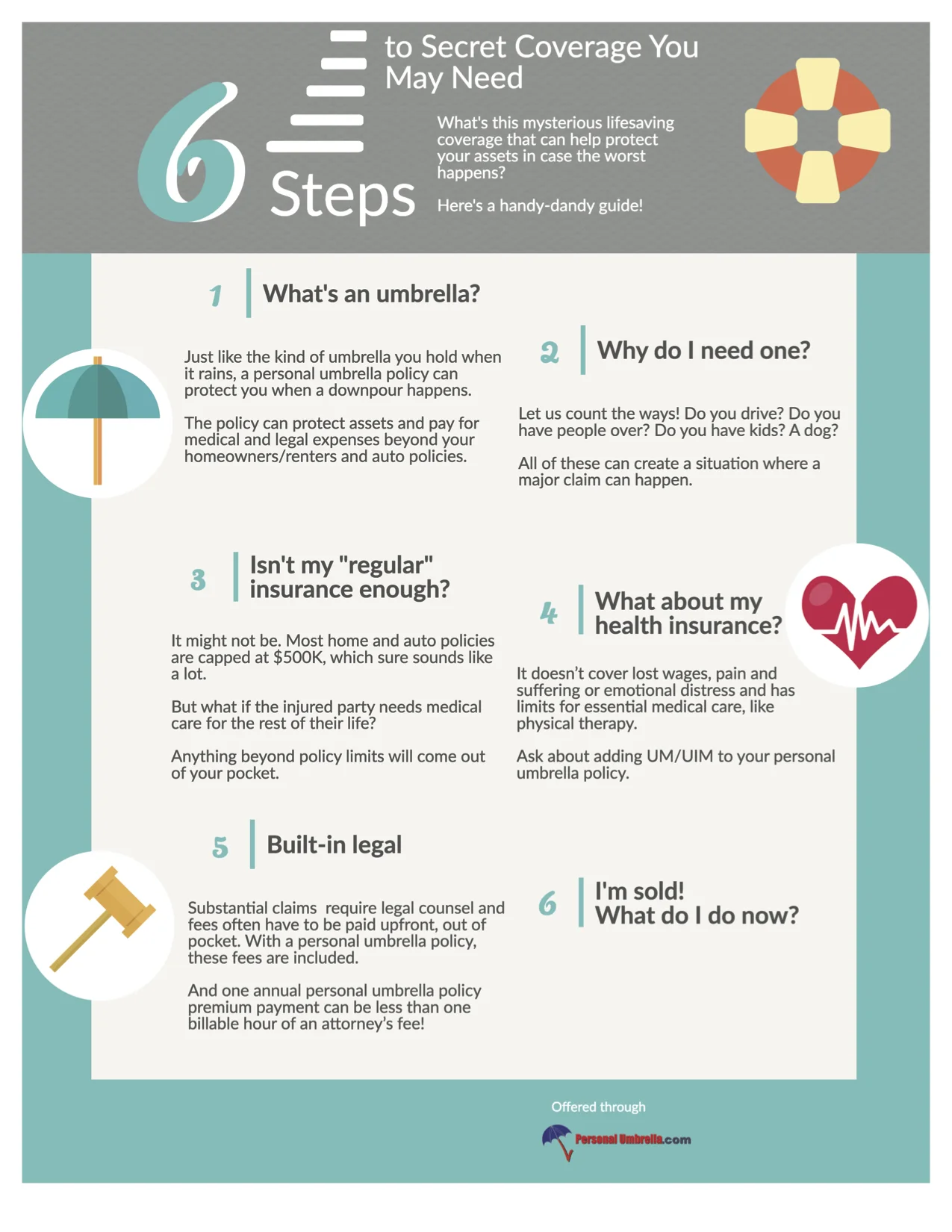 You work hard for the things that are important to you. For added coverage above and beyond the liability limits of your Auto or Home insurance policies, a Personal Umbrella insurance policy can provide added protection for your assets and future earnings.